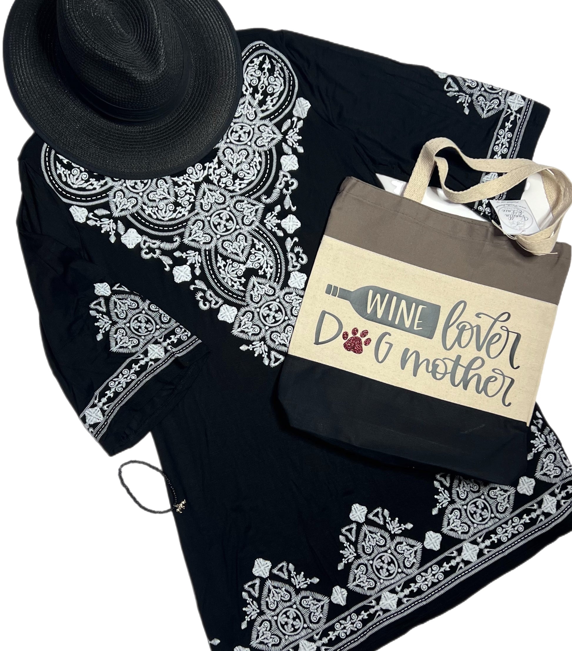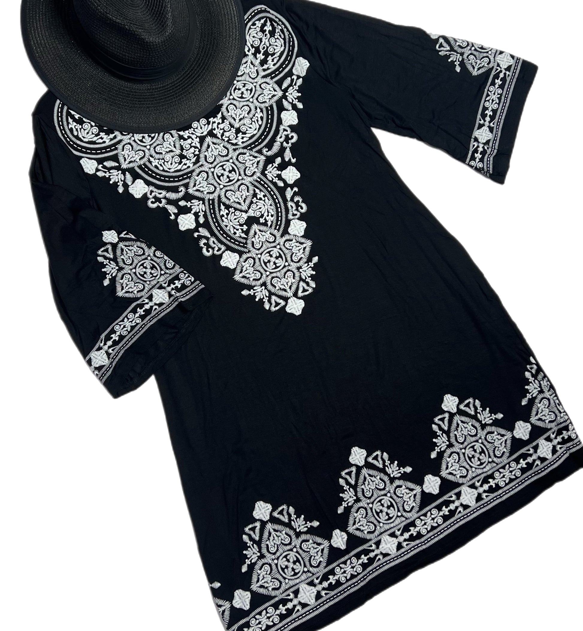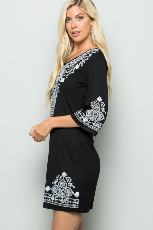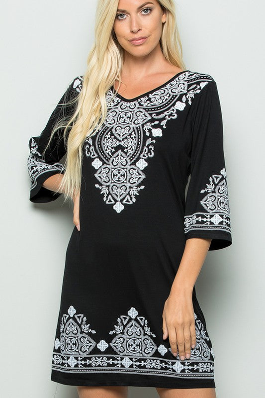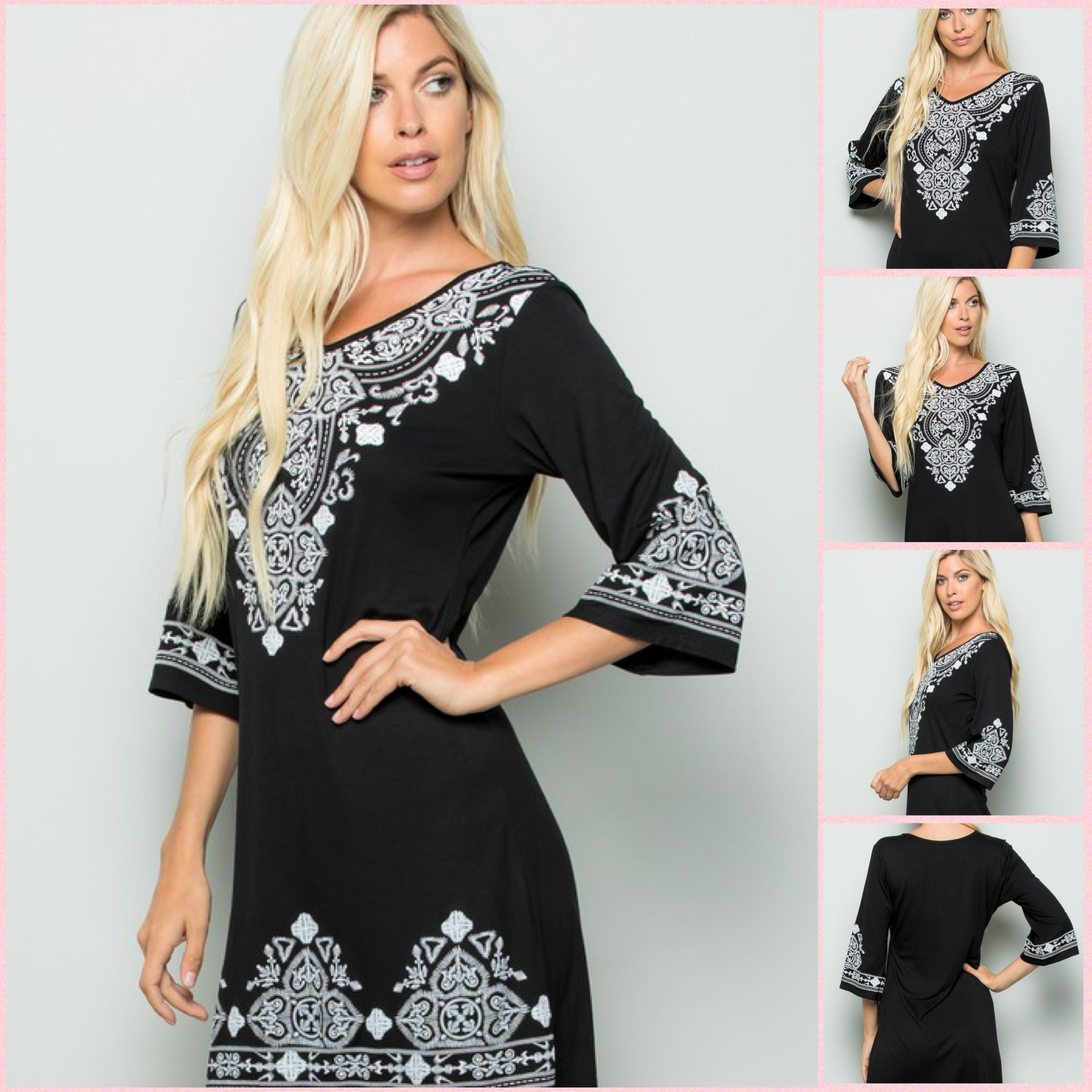 Black & White Damask 3/4 Sleeve Dress - DEAL OF THE DAY 9/22/25