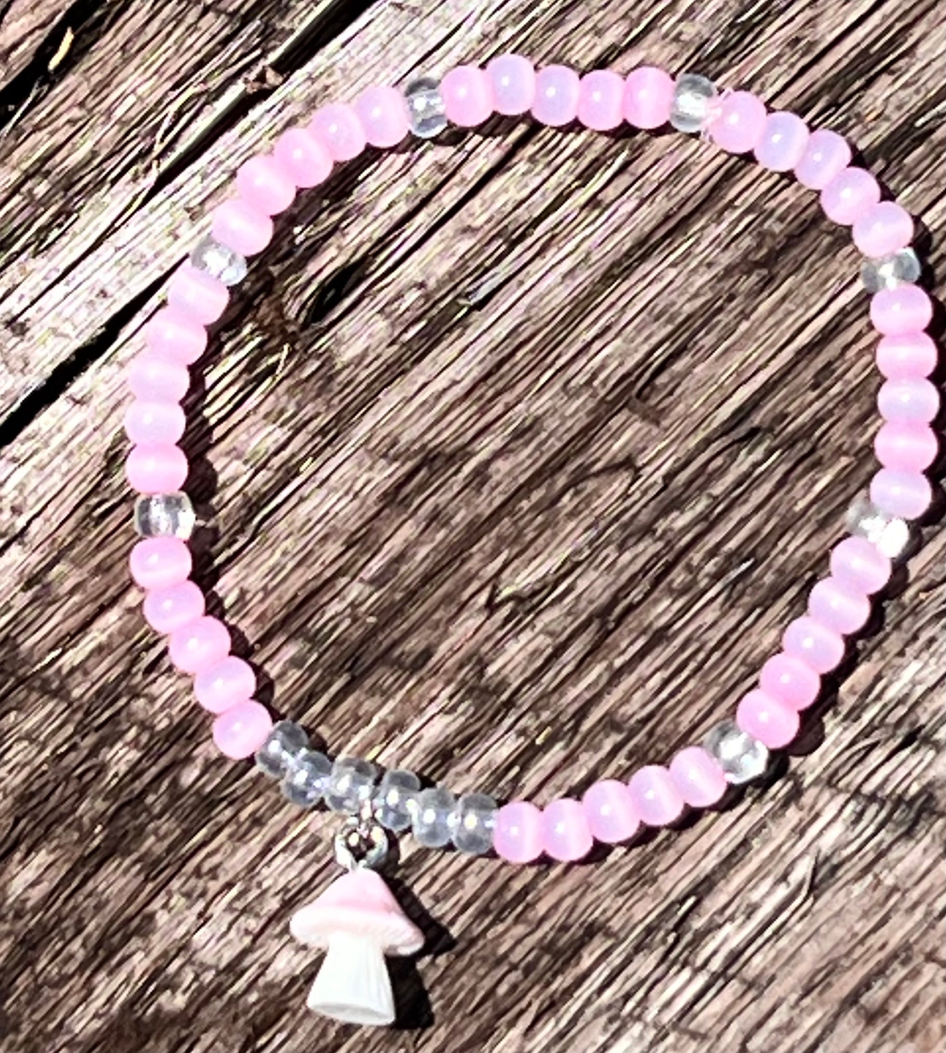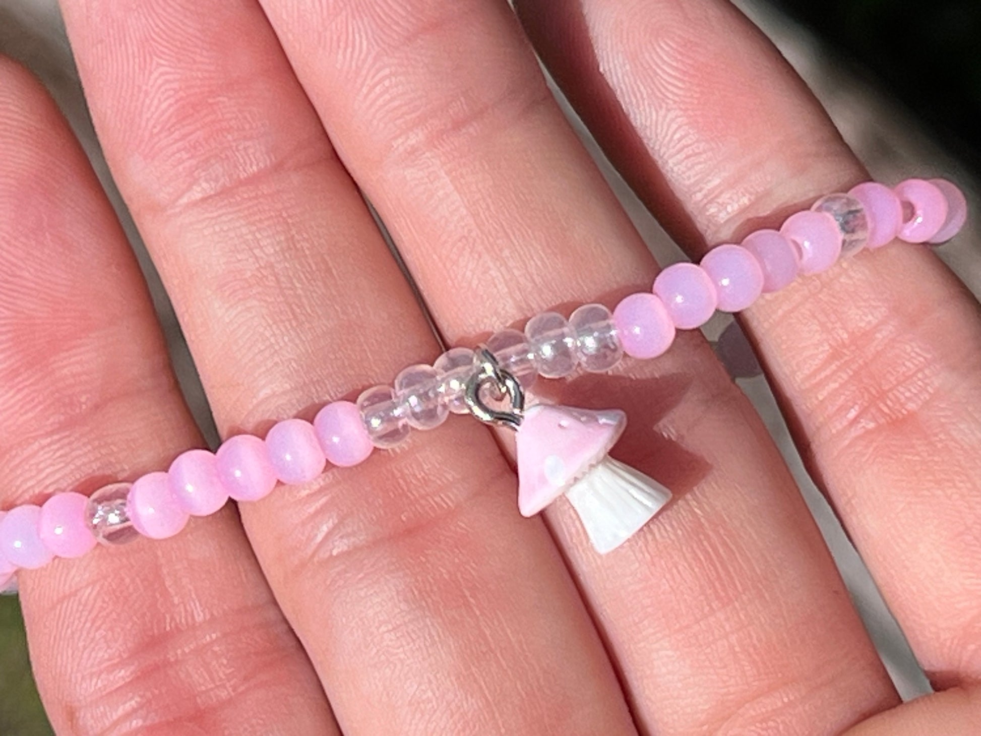 Handmade Pink & White Mushroom Anklet/Bracelet