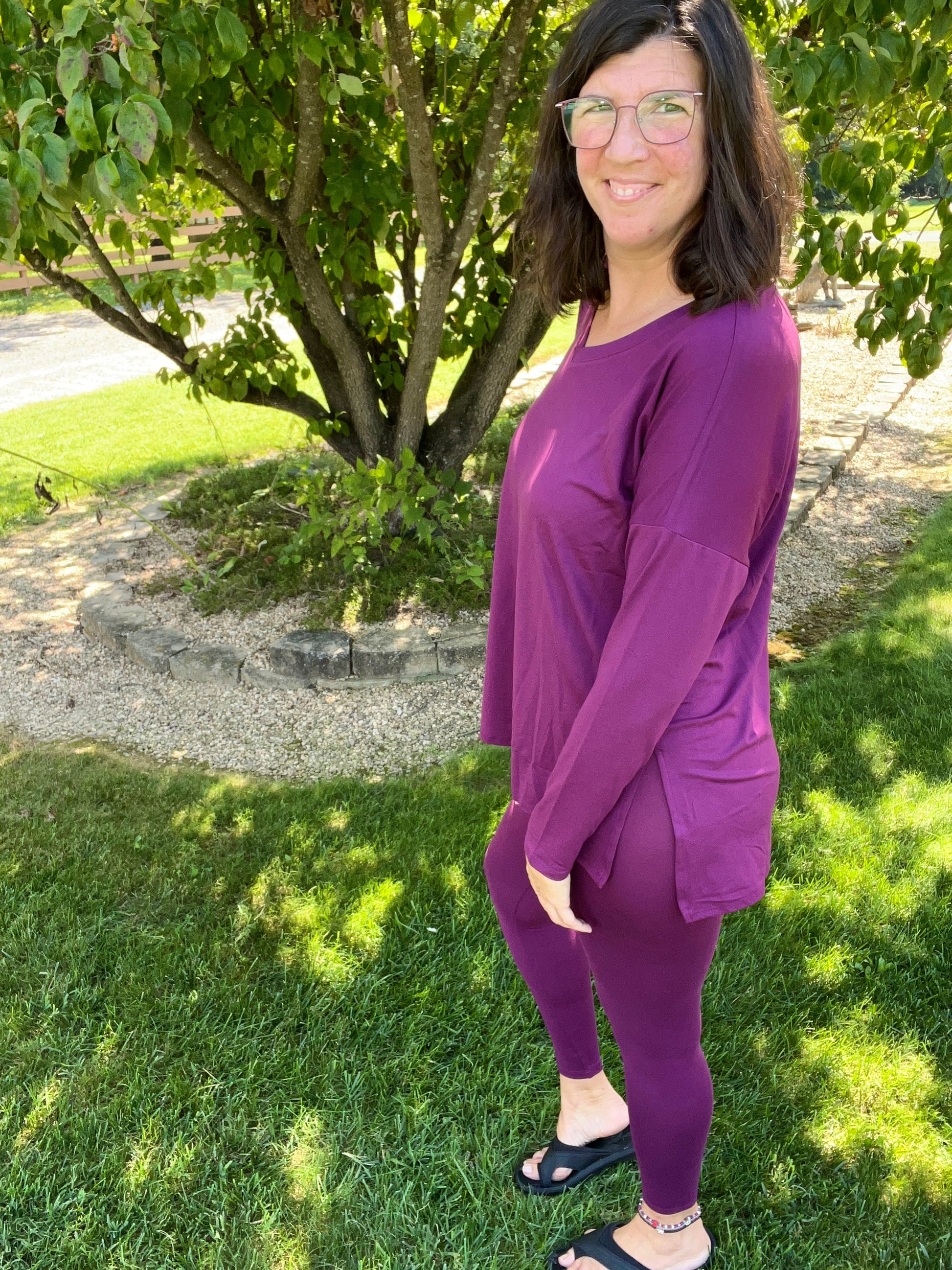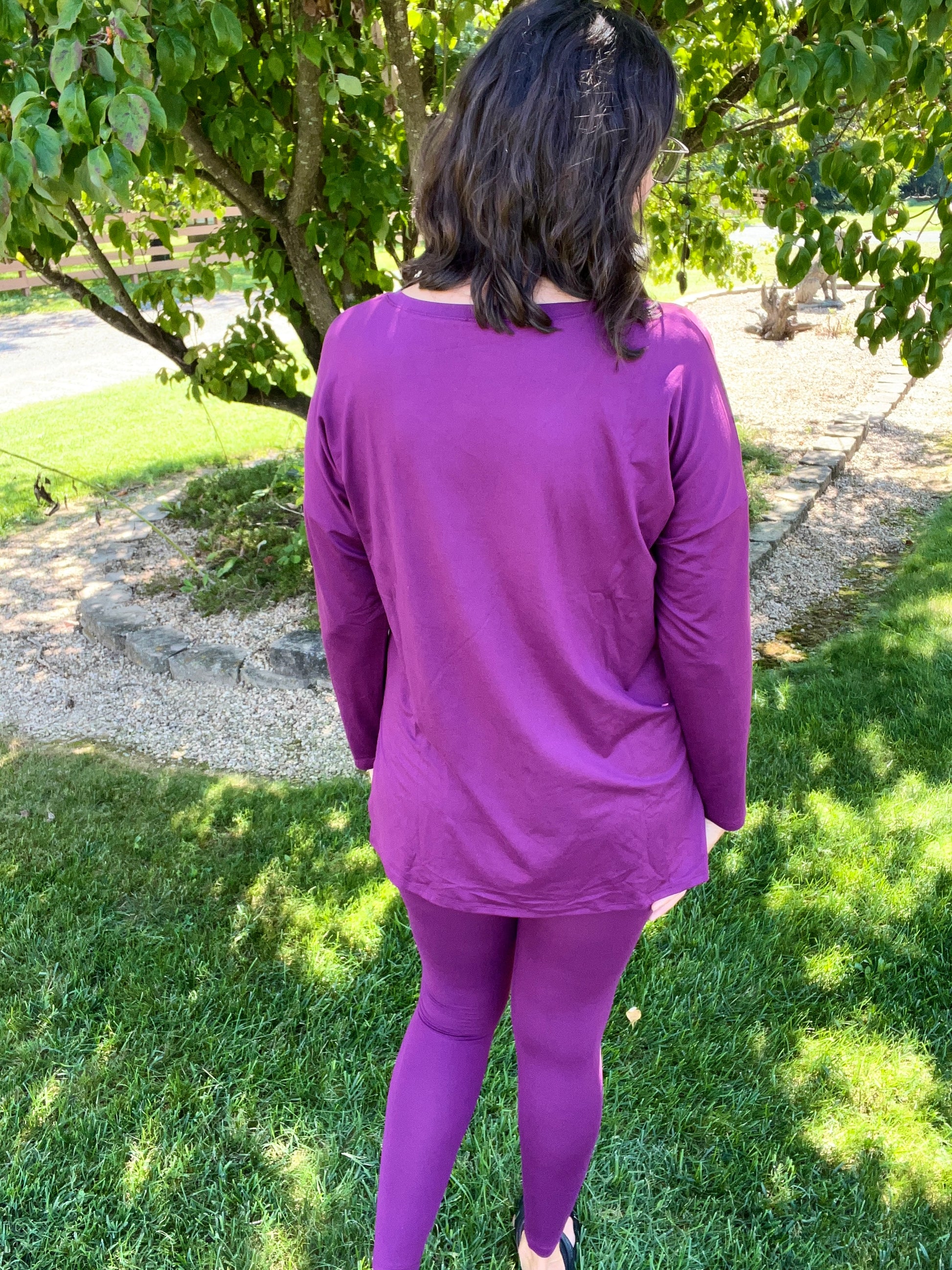 Zenana Plum Purple Long Sleeve Top & Legging Set - Super Soft Microfiber