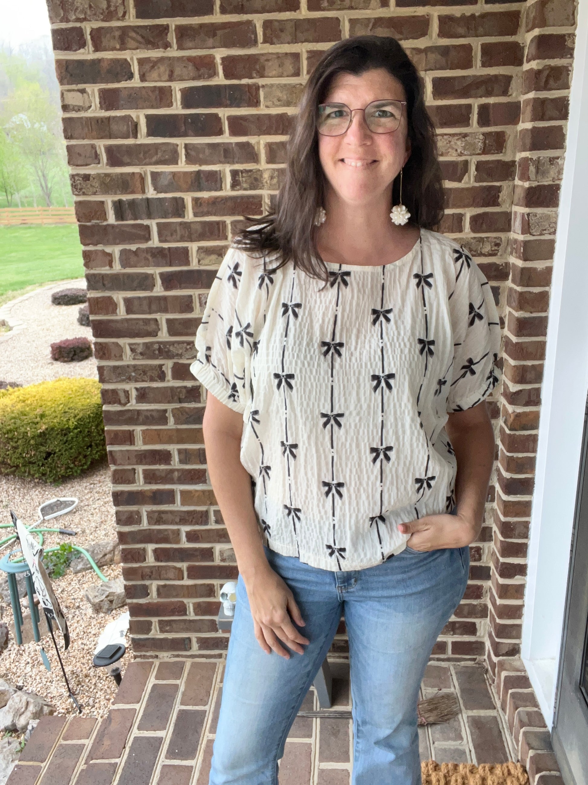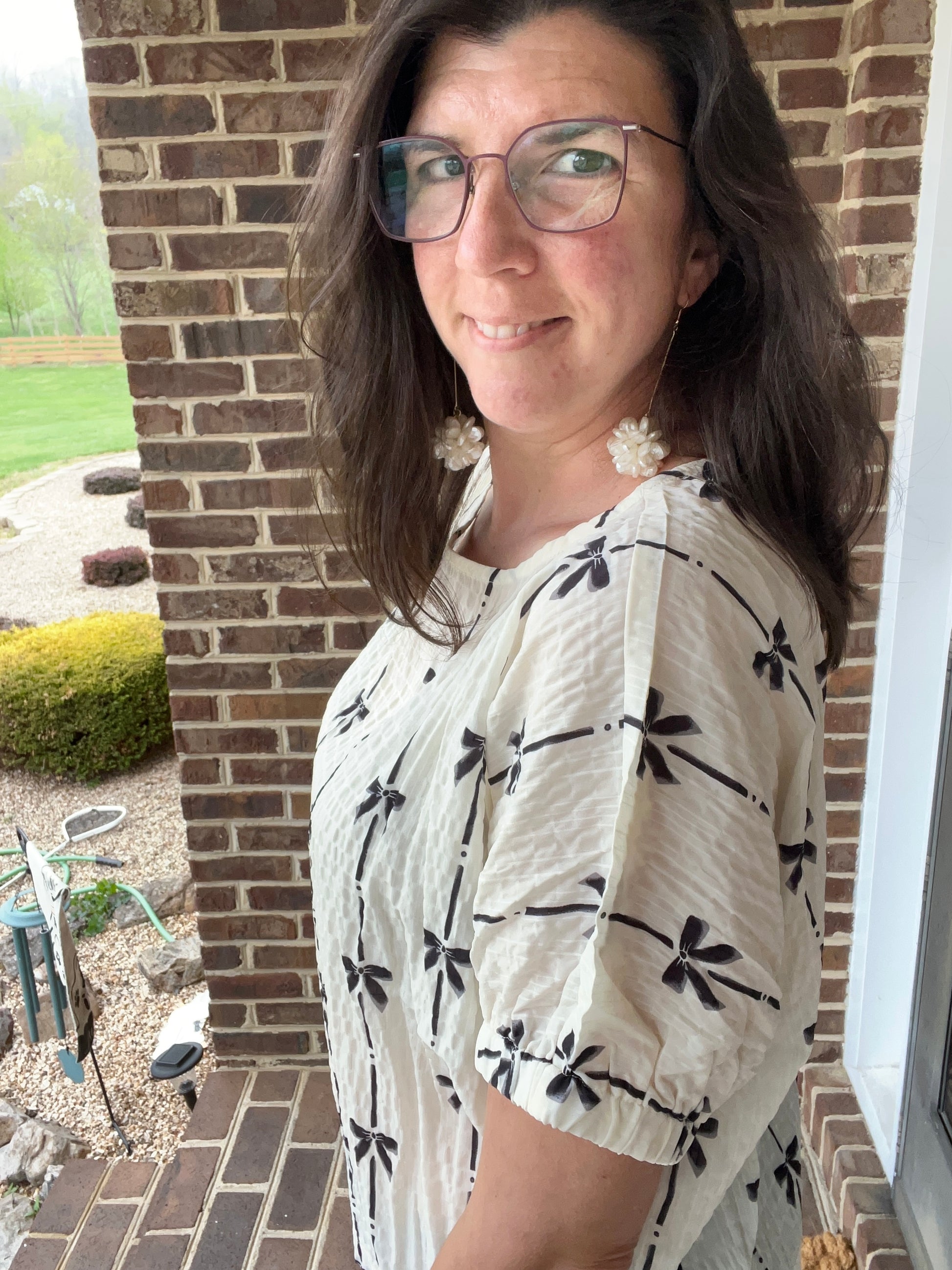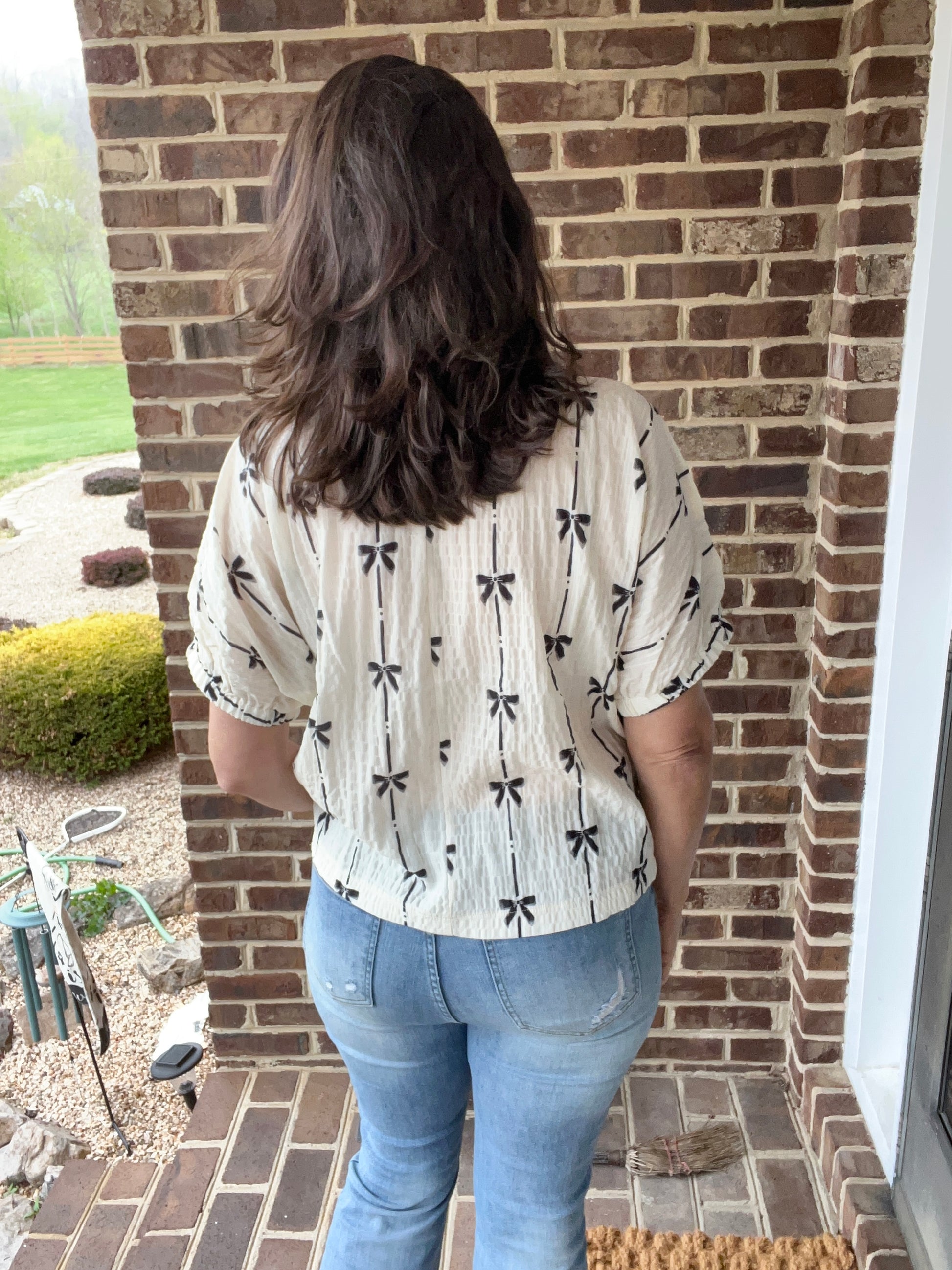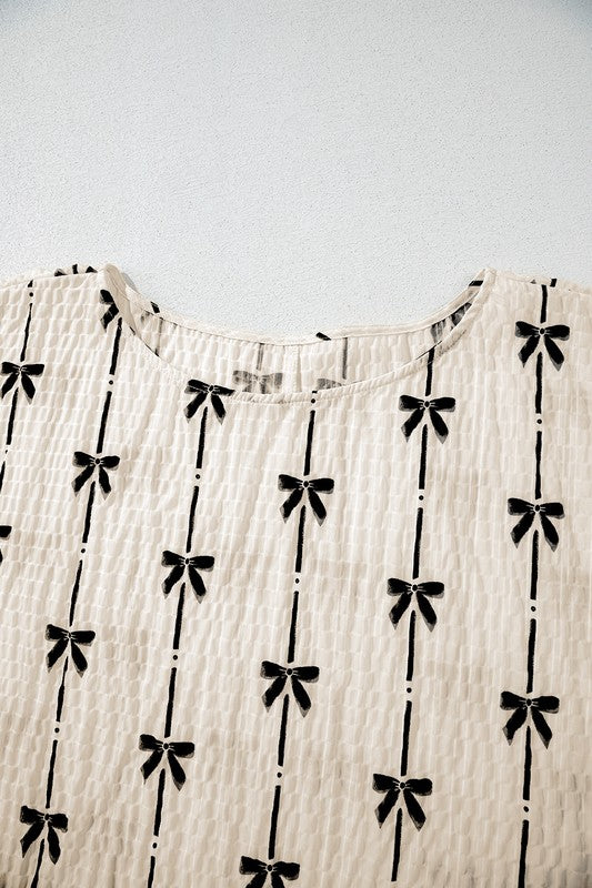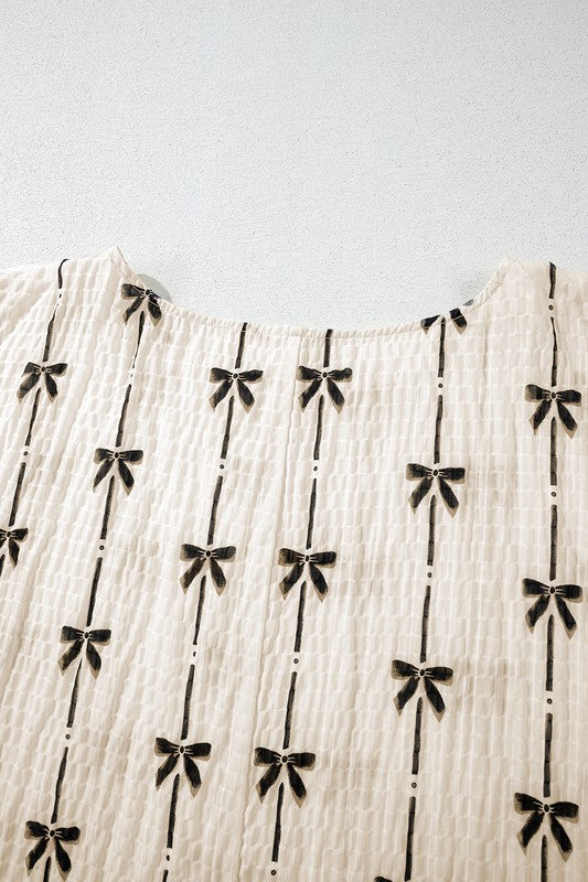 Crinkle Bow Printed Blouse