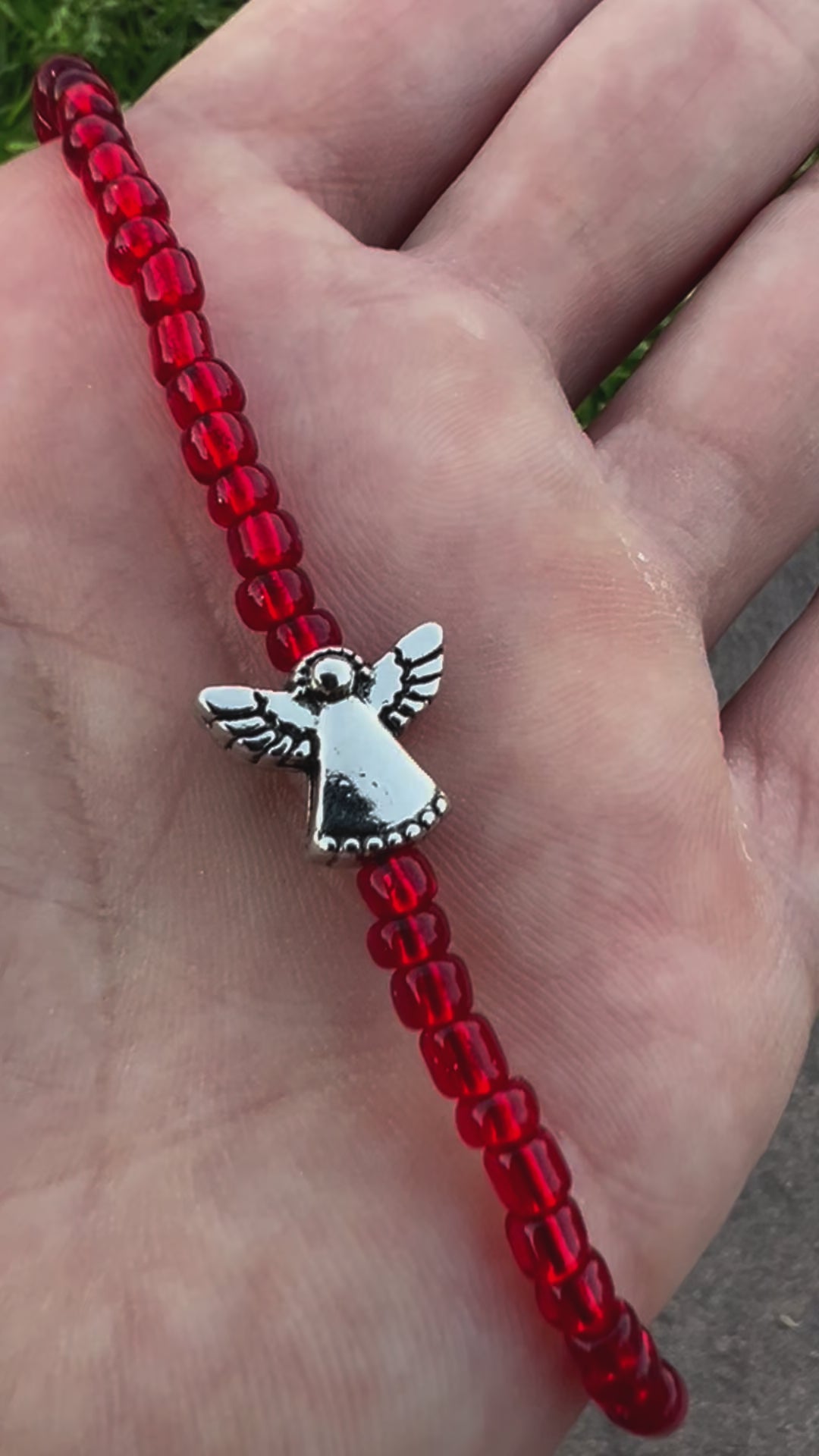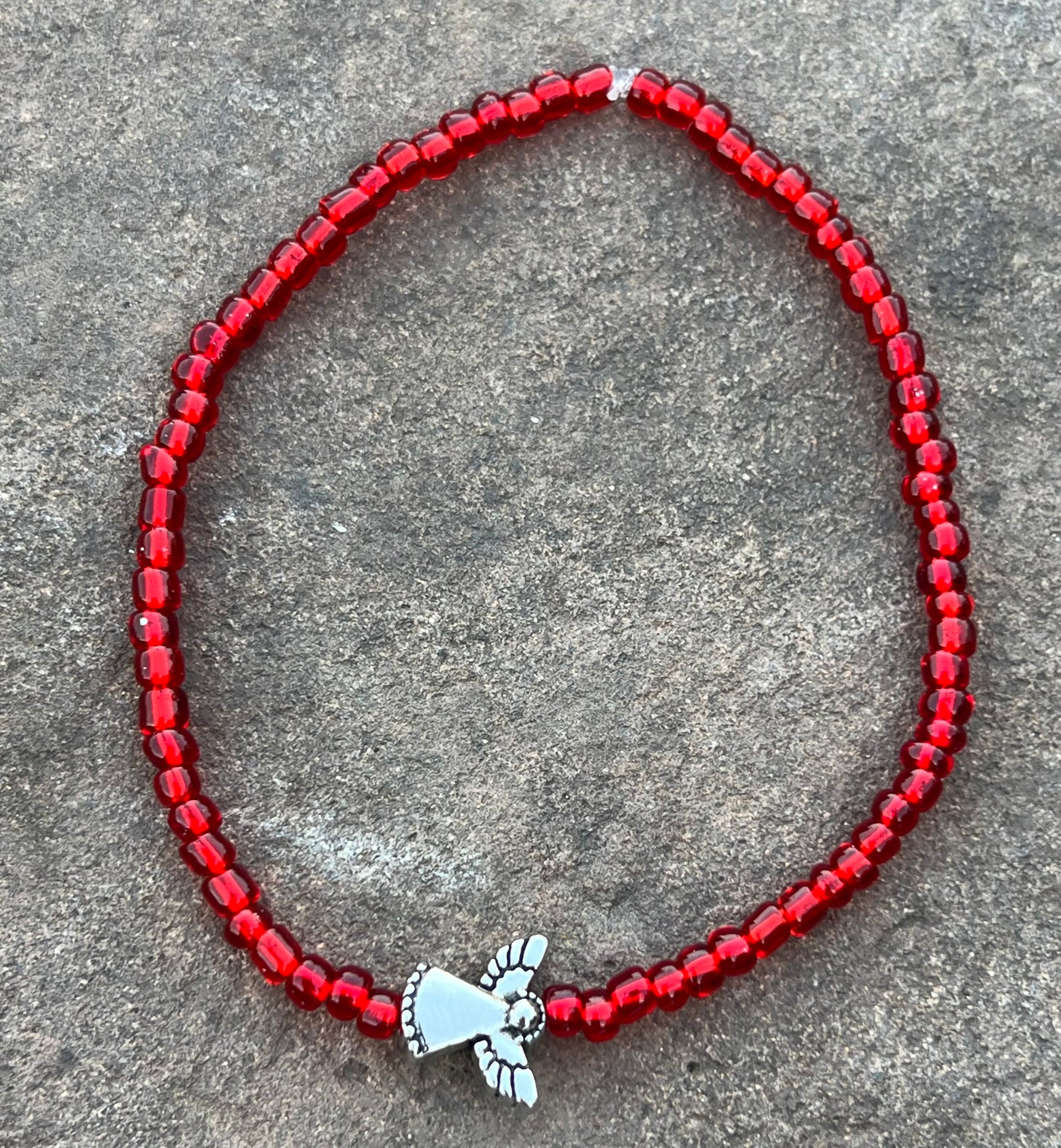 Simply beautiful Angel 😇 bead pair with translucent red glass seed beads.