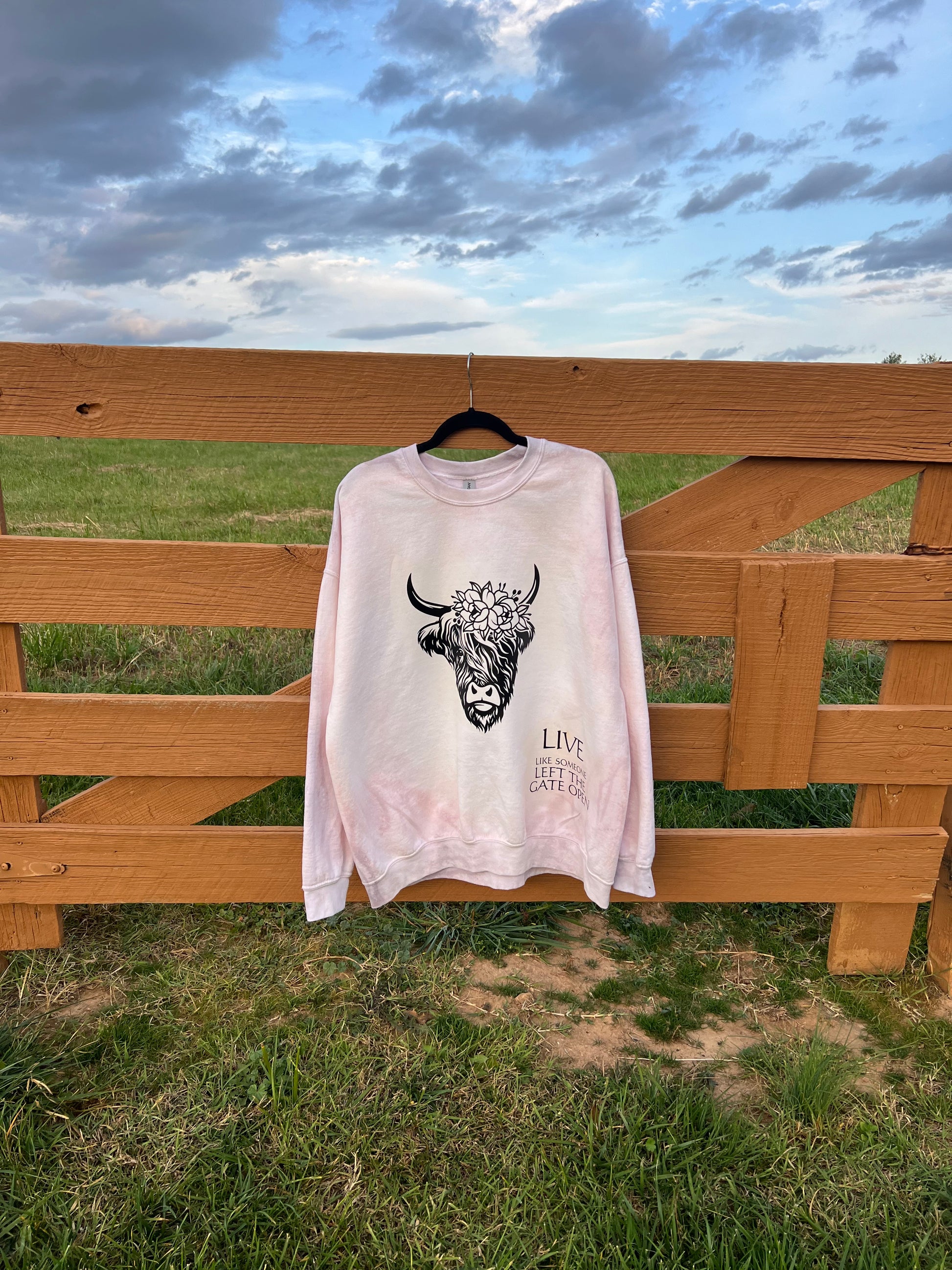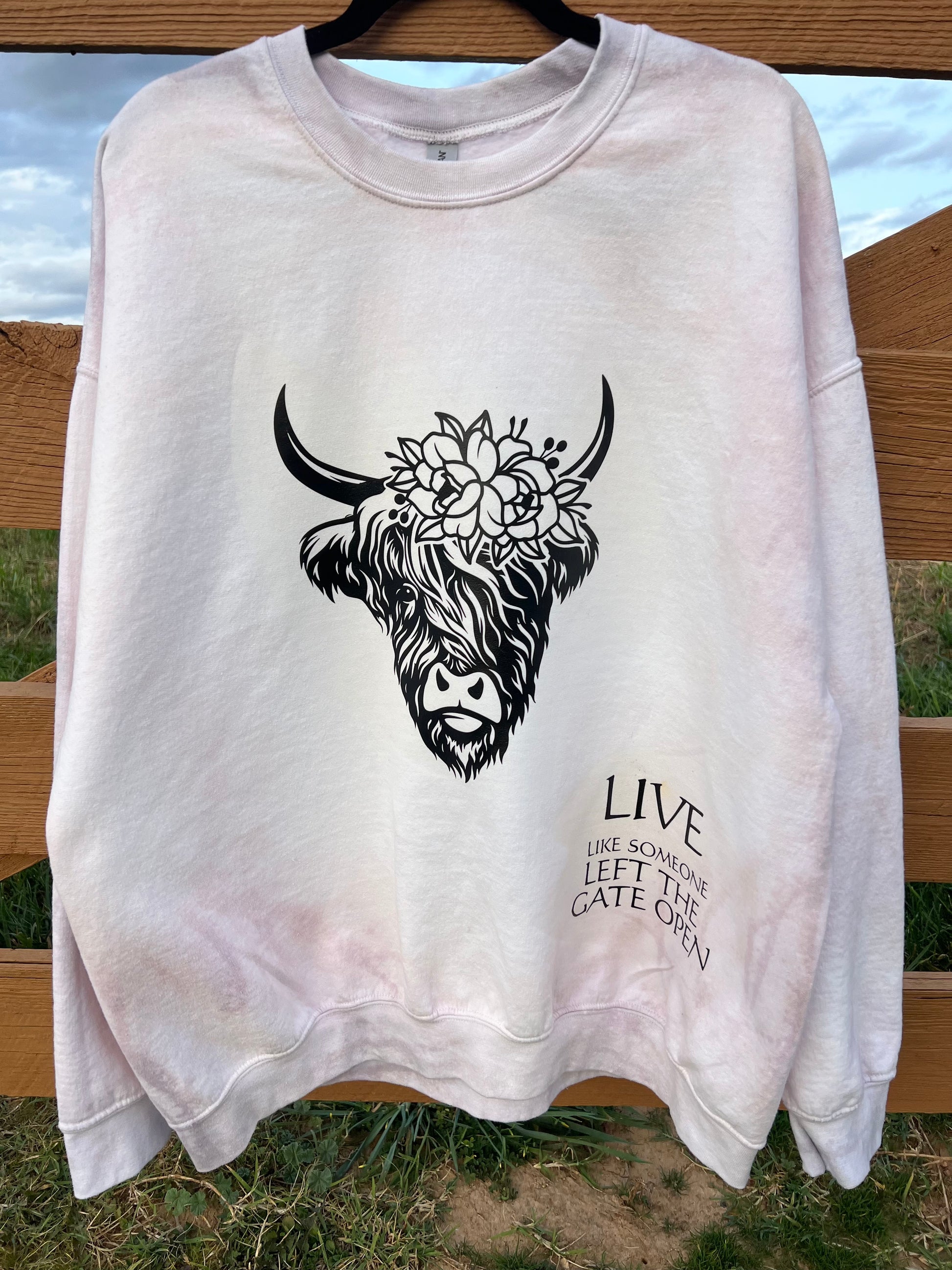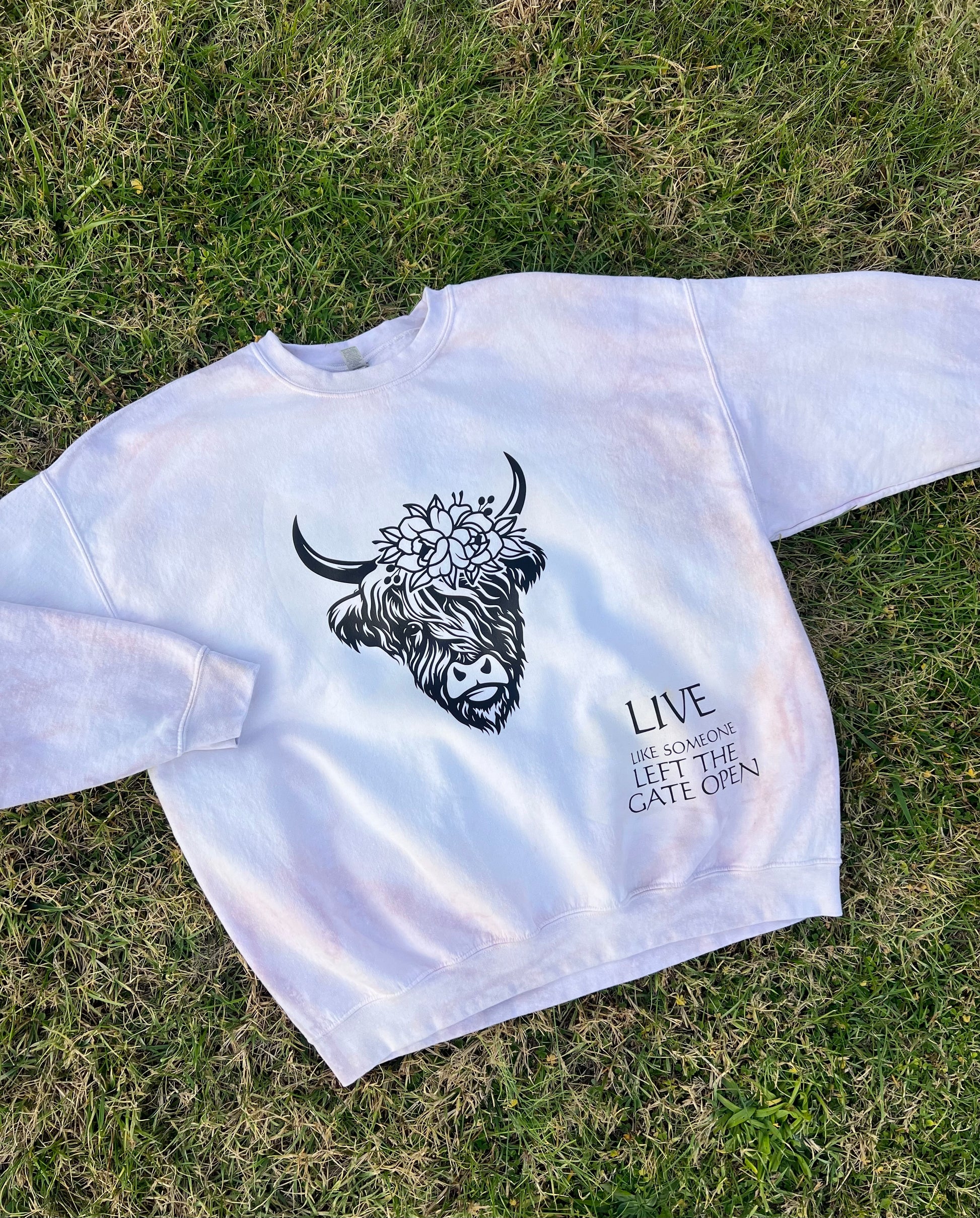 Highland Cow Hand Dyed Sweatshirt - Live as if someone left the gate open