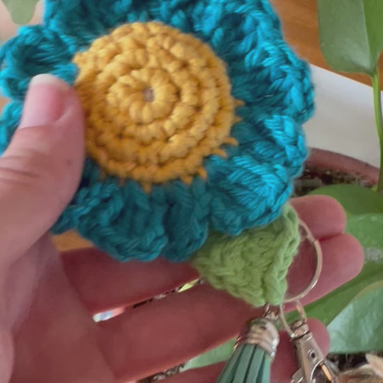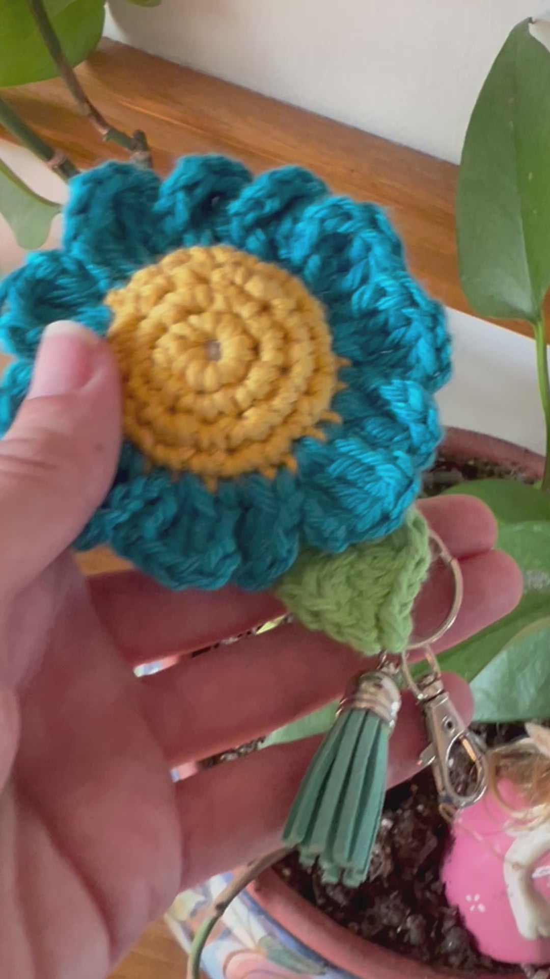 Teal & Gold Dainty Cotton Crochet Daisy Keychain