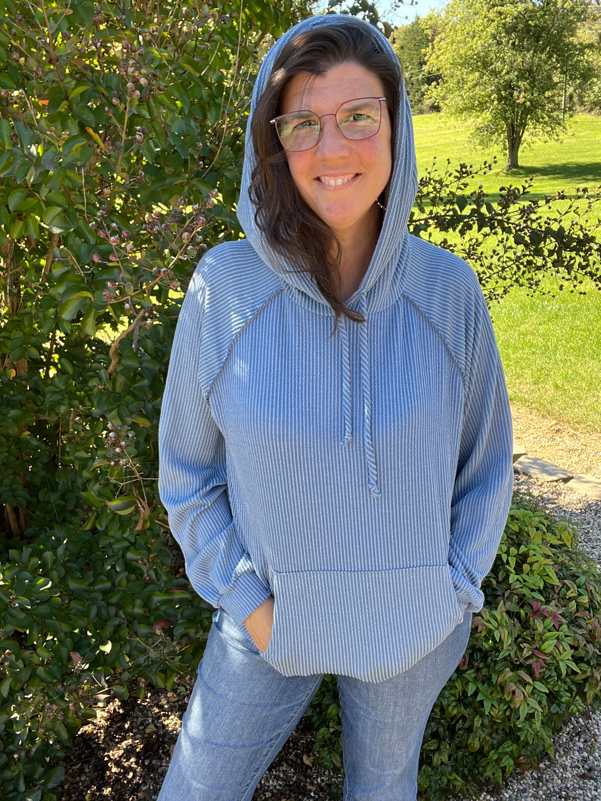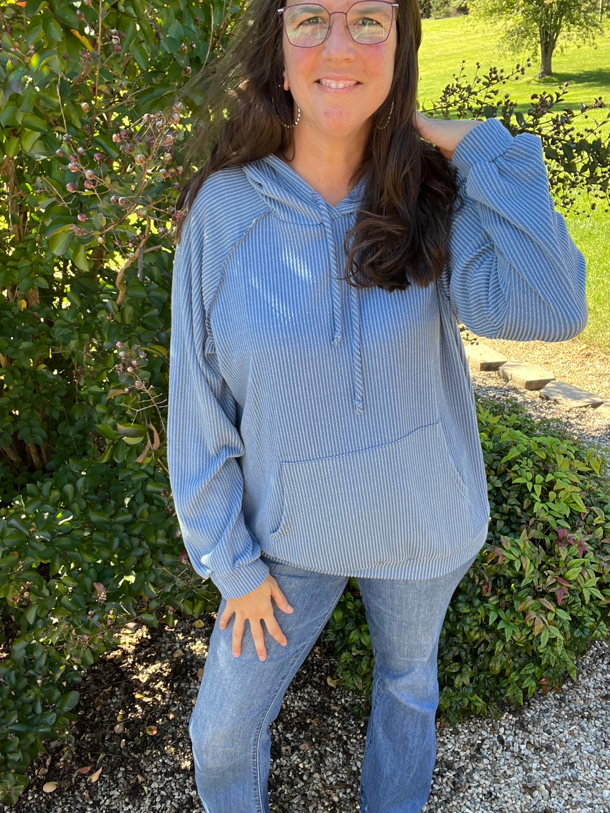 Long sleeved draw string urban hoodie. Features a kangaroo front pocket and elastic band detail.