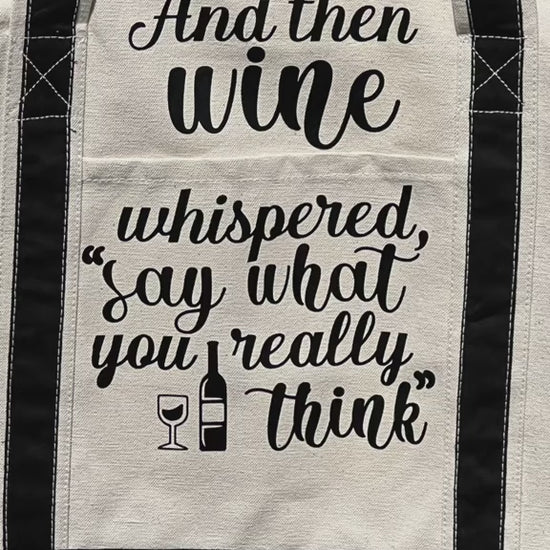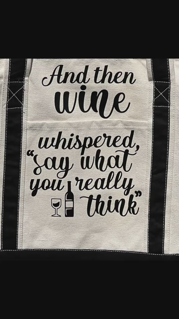 “And then wine whispered say what you really think” in black vinyl with wine red shimmering hearts.
