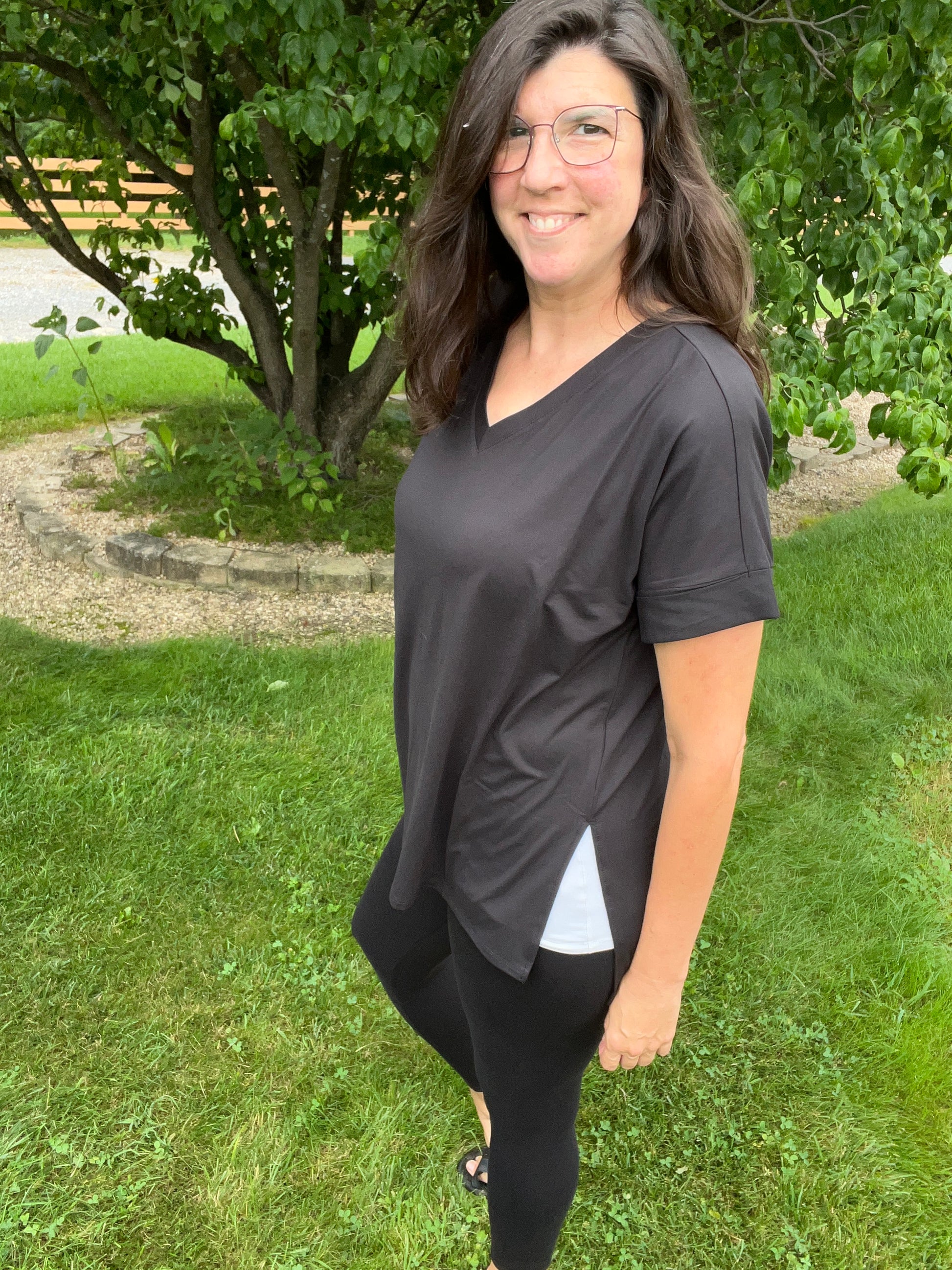 Oh so soft Zenana solid black v-neck top w/ matching leggings set!!!
