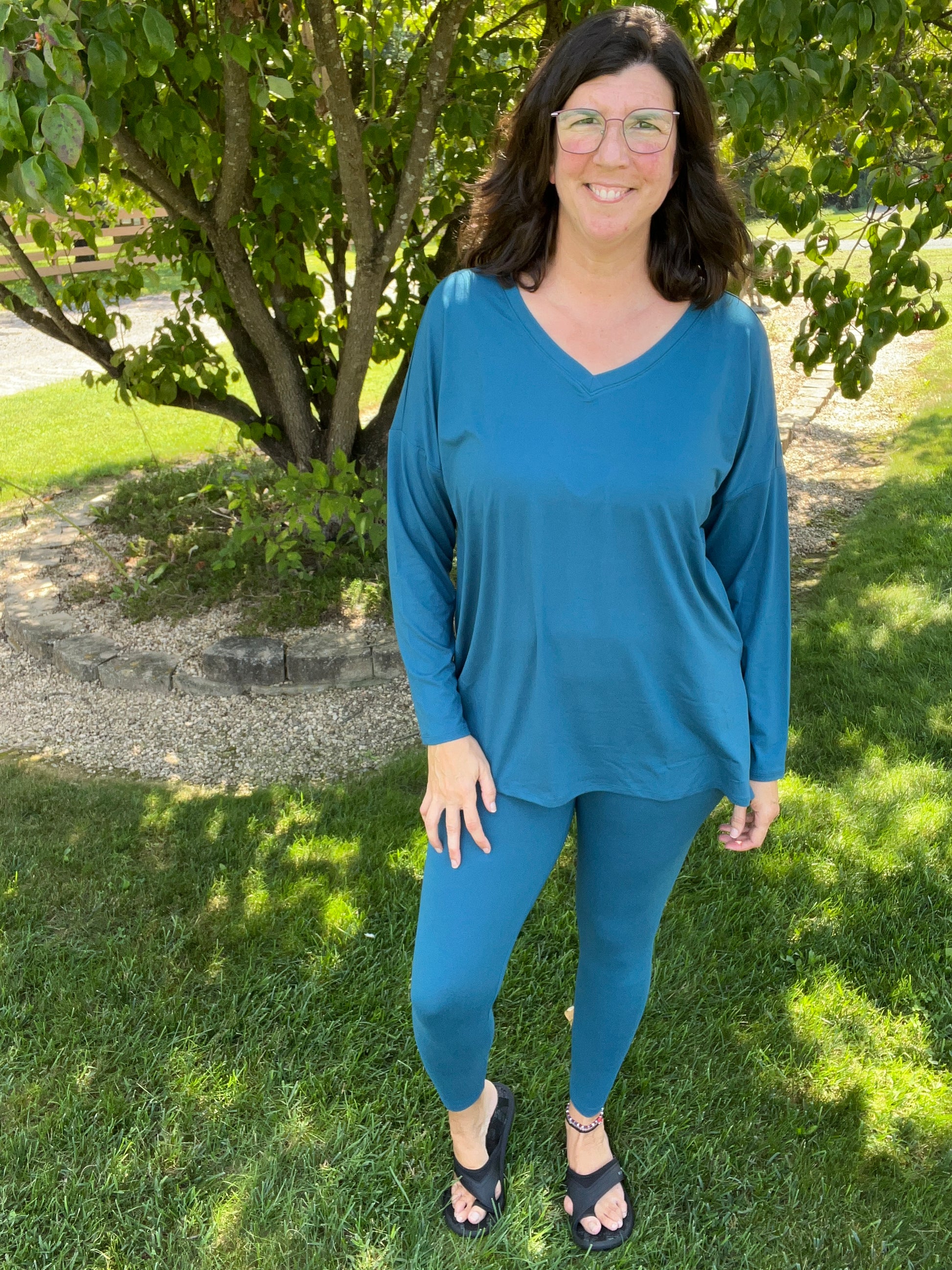 Oh so soft Zenana solid dark teal v-neck long sleeve top w/ matching leggings set!!!