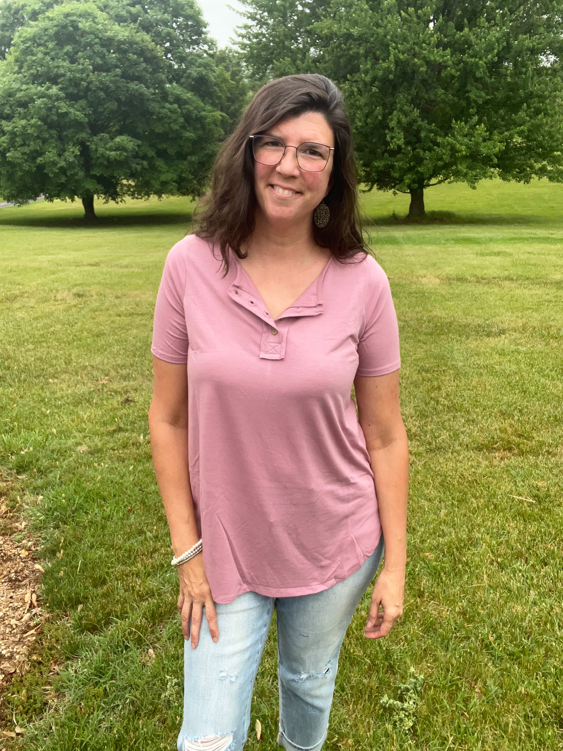 Zenana Rose Pink Button Front Top